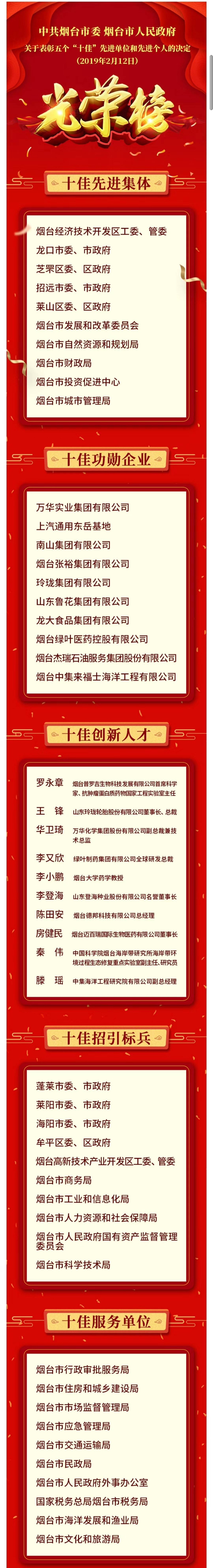 2月12日,2018年煙臺高質(zhì)量發(fā)展總結(jié)表彰大會召開。會議隆重表彰了煙臺市十佳先進集體、十佳功勛企業(yè)、十佳創(chuàng)新人才、十佳招引標兵和十佳服務(wù)單位。龍大食品集團有限公司榮獲“煙臺市十佳功勛企業(yè)”稱號。