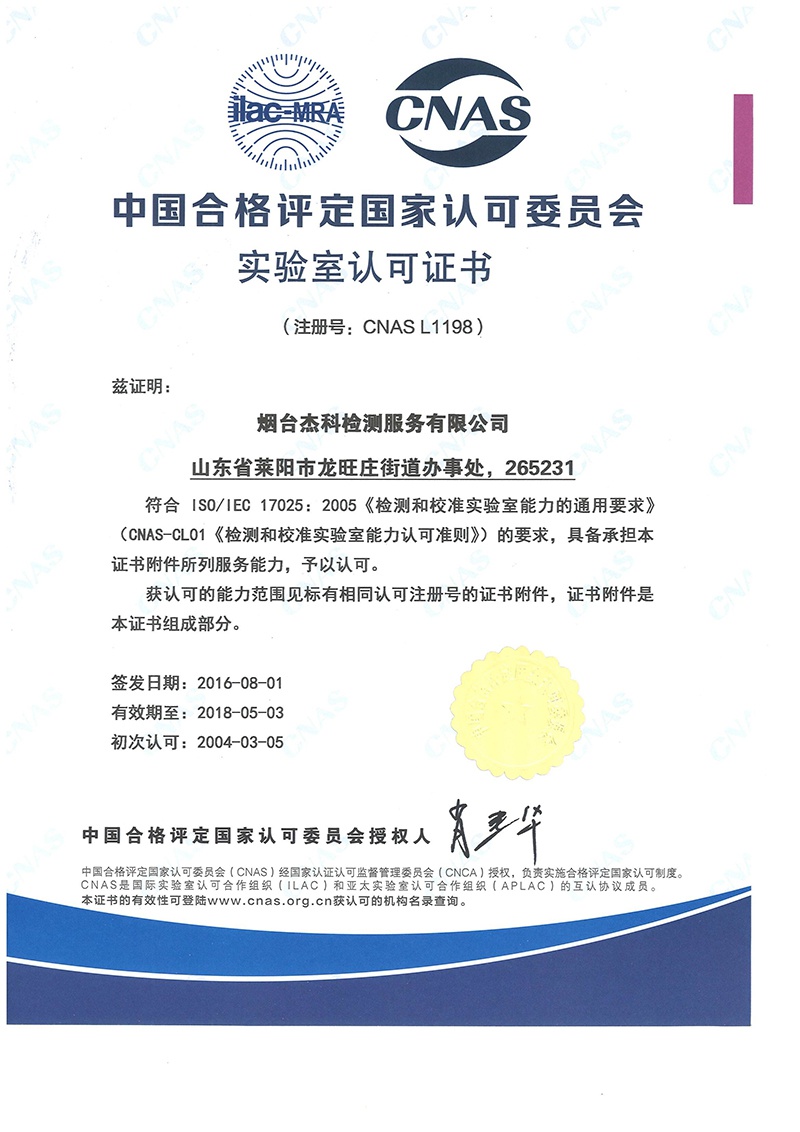 3月31日-4月1日,中國合格評定國家認可委員會(CNAS)委派專家組一行7人,對杰科檢測進行了實驗室認可換證評審及擴項評審的現場評審。