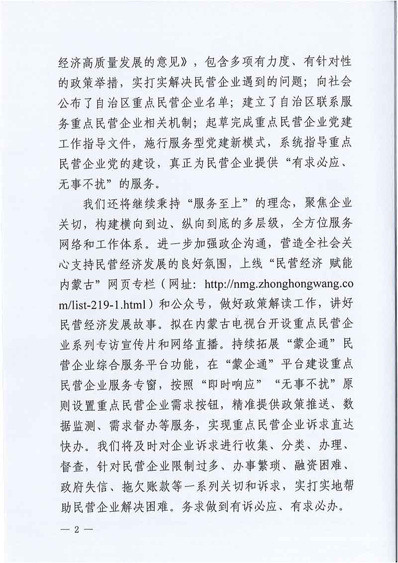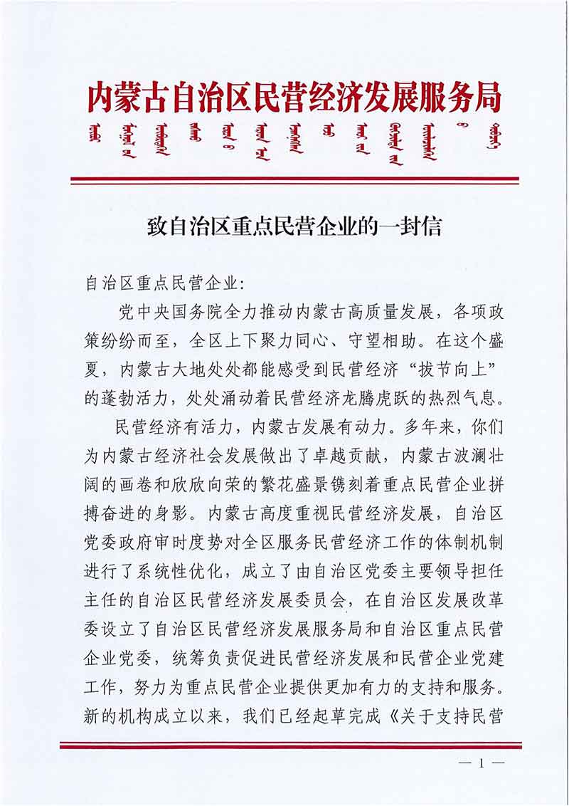 致自治區(qū)重點(diǎn)民營企業(yè)的一封信